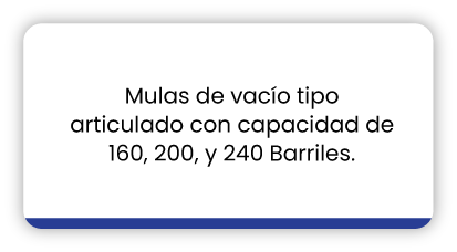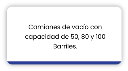 Nos dedicamos al transporte de fluidos con camiones de vacío, mulas de vacío, inyección de fluidos con Bomba Tríplex o desplazamiento positivo, servicios con vactor, y equipos tipo alto vacío. Somos especialistas en el manejo, transporte y disposición final de fluidos extra pesados.